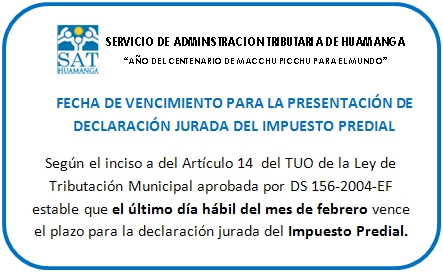 Plazos para la presentación de la Declaracion Jurada del Impuesto Predial